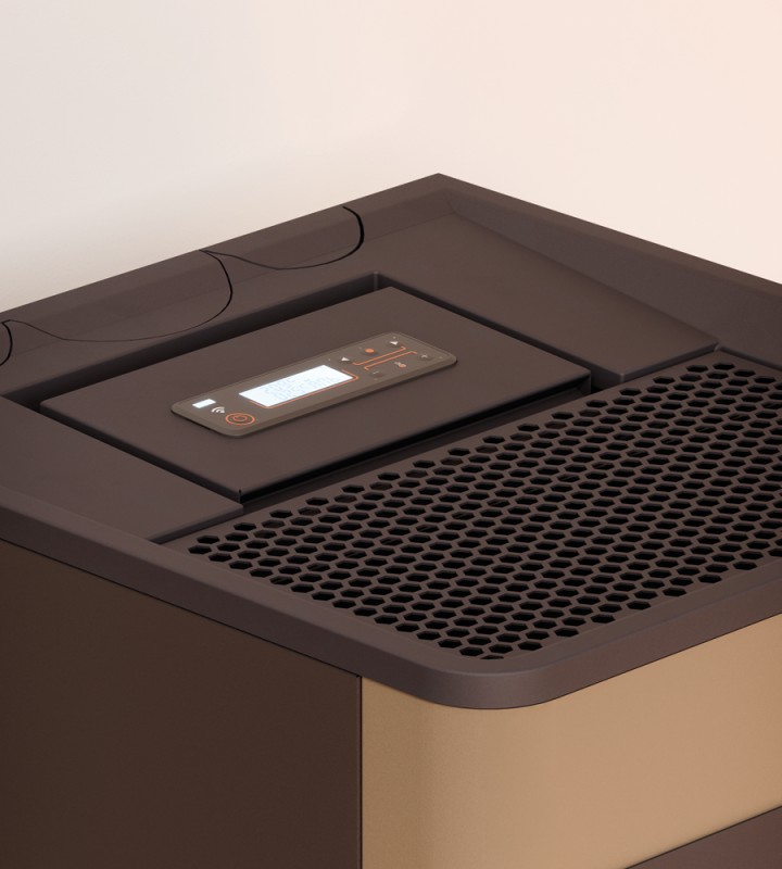 Een nieuwe geventileerde pelletkachel, met een breed glas, een bovenblad met een innovatief ontwerp en een breed scala aan afwerkingen waardoor hij gemakkelijk aan elke omgeving kan worden aangepast. 5-sterren verbrandingskamer, GoFast-snelontsteking en Flexit-technologie, voor meer veelzijdigheid als het gaat om rookuitstoot.