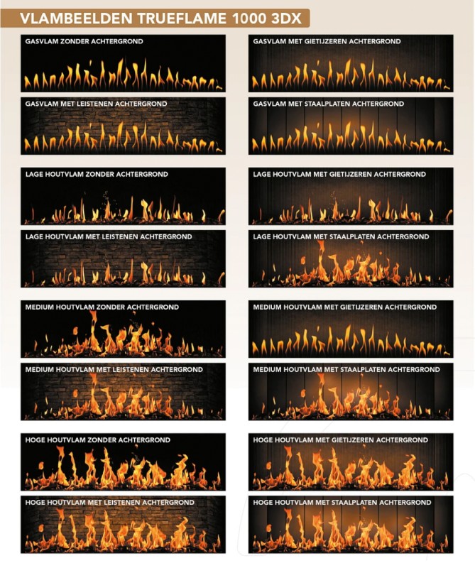 De Solution TrueFlame 1000 LCD (ook wel 3DX genoemd) is verkrijgbaar als fronthaard, hoekhaard of driezijdige panoramahaard, zodat hij perfect in elk interieur past. Het omkeerbare vlamscherm geeft je de keuze voor gerookt glas met een subtiele reflectie of gespiegeld glas voor een diepte-effect dat je versteld doet staan. Bediening is eenvoudig via afstandsbediening en via een handige app.