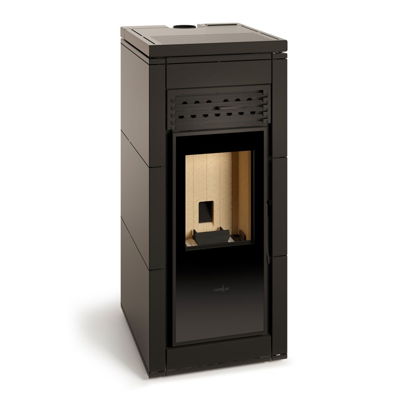 De Venus is voorzien van een glazen deur en een schuifdeksel op geleiders, wat het bijvullen van pellets vanaf de bovenkant eenvoudig maakt. Dankzij de mogelijkheid voor zowel achter- als bovenaansluiting kan de kachel strak tegen de muur worden geplaatst, dat bespaart ruimte en zorgt voor een nette installatie!