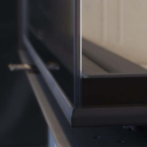 Grootse designhaard met exclusief extra hoog glas voor maximaal zicht op het vuur, welke een nog luxere uitstraling geeft.