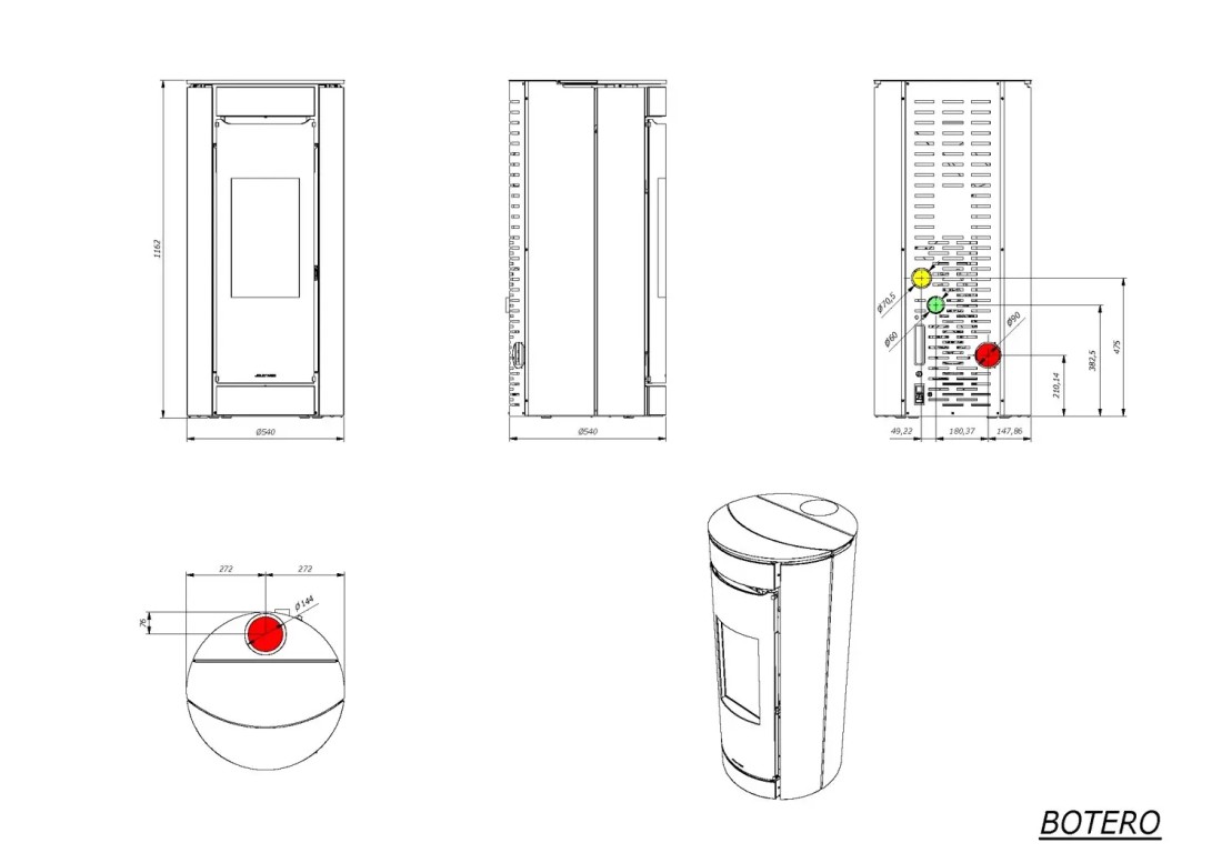 De Botero T-WIN-voeding wordt gevoed door 24 volt, een technologie die besparingen op het gebied van elektrisch verbruik, een betere controle van de verbranding en een grotere betrouwbaarheid en veiligheid garandeert. Botero T-WIN kan op pellets werken, zelfs als er geen elektriciteit is, dankzij een batterijkit en/of een fotovoltaïsche kit (optioneel). De werking van een natuurlijke convectie is verzekerd, in het geval van een stroomstoring. De Botero T-WIN functioneert hermetisch om zuurstof uit de omgeving op te vangen en is kanaliseerbaar. Botero T-WIN is een gecertificeerde kachel dankzij zijn generatietechnologie, waardoor het hoge opbrengsten en lage emissies kan verkrijgen.